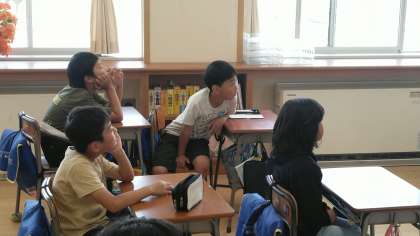 3年生は、5時間目に動画を見ていました。キリンを入れる大きな箱をつくる動画でした。