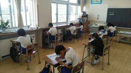 4年1組の3時間目は、理科の学習でした。「天気と気温」のテストをしていました。
