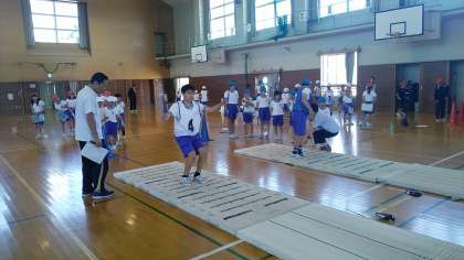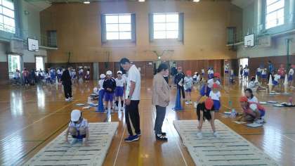 立ち幅とびの様子です。とぶ前の腕の振りが大事みたいです。