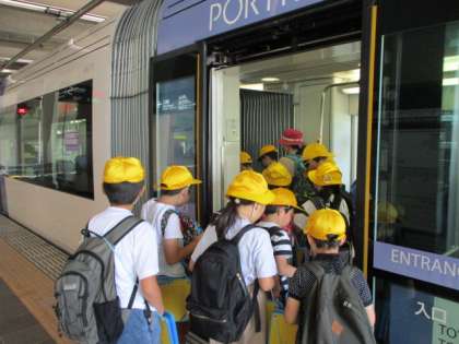 富山駅からライトレールに乗り、岩瀬まで行きました。自分で運賃を払う体験もしました。