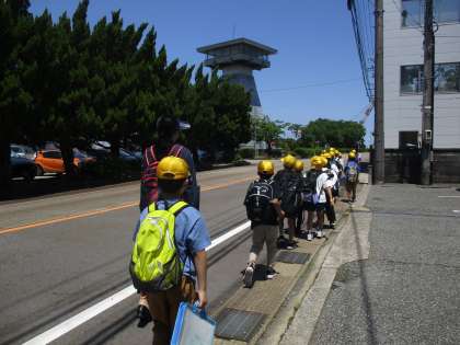 市役所展望塔にのぼり、富山市の様子を見学し、歩いて富山駅まで行きました。ライトレールに乗って岩瀬へ行き、富山港展望台にのぼりました。