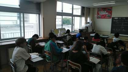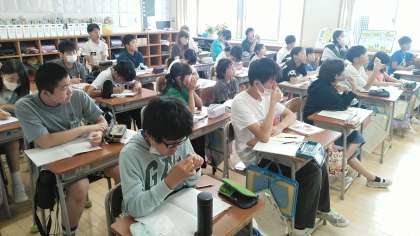 6年生の1時間目は、算数科の学習でした。分数÷分数の式のたて方や計算の仕方について考えていました。
