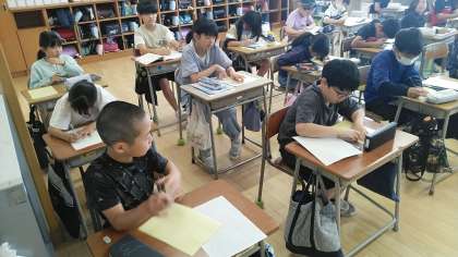 4年2組の1時間目は、国語科の学習でした。この前下書きをしていたお手紙の清書を書こうとしていました。