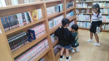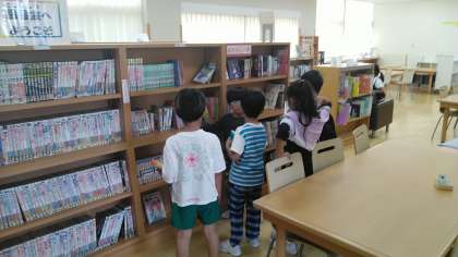 1年生は、1時間目に図書室にいました。借りていた本を返して、新しい本を選んでいました。