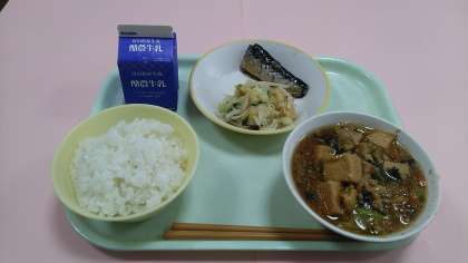 6月10日(月)の給食 公開日 2024/06/10 更新日 2024/06/10 学校から 今日の給食です。 【献立】 ごはん 牛乳 いわしの土佐煮 はりはり和え 厚揚げと小松菜のごまみそマーボー です。