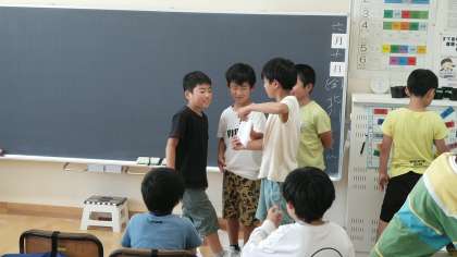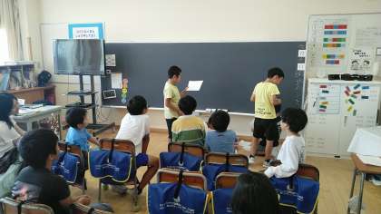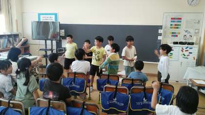 3年生は、5時間目に係の仕事をしていました。クイズ係が、みんなに問題を出していました。