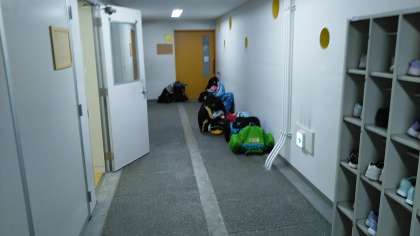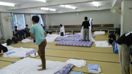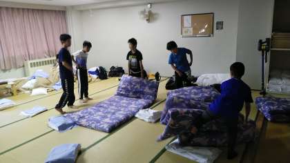 おはようございます。子供たちは、起きて布団をたたんだり、荷物の整理をしたりしています。