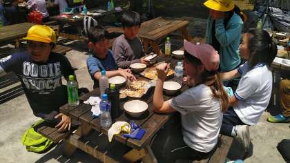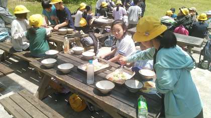 6月12日(水) 5・6年生 宿泊学習(ピザ完成1)