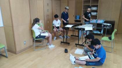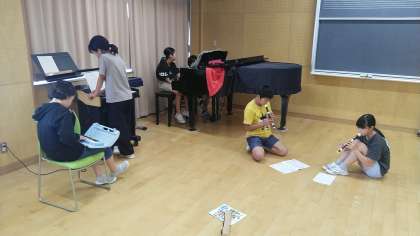 6年生の2時間目は、音楽科の学習でした。「ラバーズコンチェルト」という曲の合奏練習を班ごとにしていました。