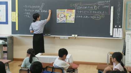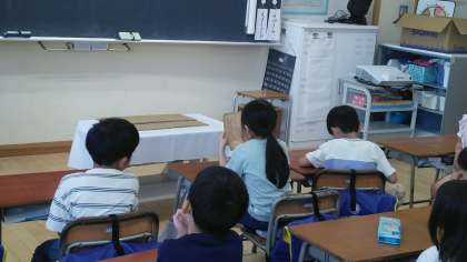 1年生は、1時間目に、ほめほめザウルスで使う道具について考えていました。「ほねほねザウルス」を参考にして「ほめほめザウルス」で使う道具について考えていました。