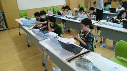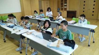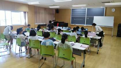 4年2組の4時間目は、音楽科の学習でした。音楽室で「風のメロディー」という曲の合奏の練習をしていました。