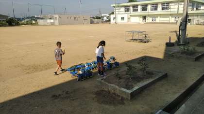今日は、土曜日ですが学習参観があるので学校があります。今日も朝からしっかり水やりをしています。