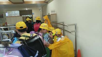 雨の日の朝の児童玄関です。すてきな姿を今日も見ることができました。