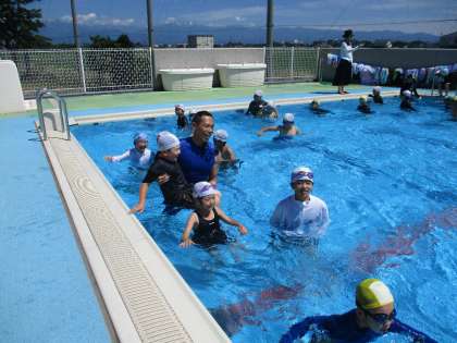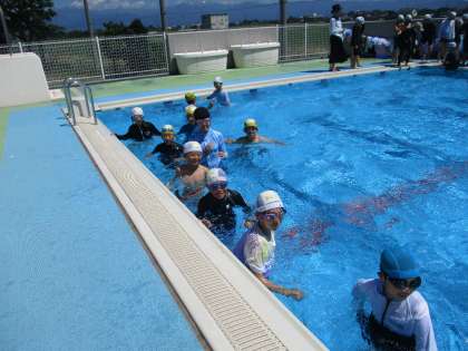 待ちに待ったプールでした。午後からは気温も上がり、とても気持ちよさそうです。。