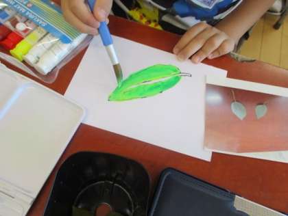 6月19日(水) 3年生 お気に入りの葉 公開日 2024/06/20 更新日 2024/06/20 3年 以前グラウンドで見付けたお気に入りの葉を描きました。絵の具の緑に、白や黄色等を少しずつ混ぜて、本物そっくりの色になるように絵の具の量を工夫しました。きれいな葉の絵が仕上がりました。