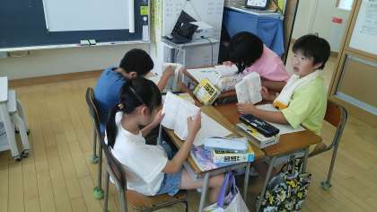 4年1組の3時間目は、国語科の学習でした。「一つの花」というお話の中に出てくる言葉の意味について国語辞典で調べていました。