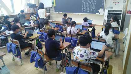 2年生は、1時間目にクロームブックを使って活動していました。各自が国語の問題を選んで解いていました。