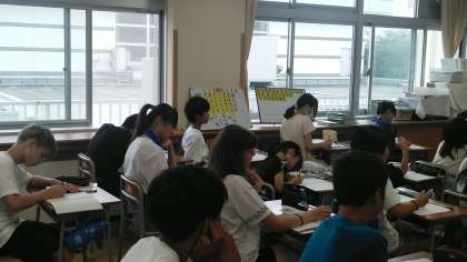 6年生の1時間目は、算数科の学習でした。分数の倍が分かり易くなるようにと、まず、1倍や1.5倍について考えていました。
