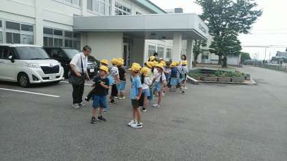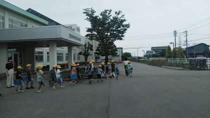 2年生が町探検に出かけて行きました。今日は、布目公園の辺りをまわってくるそうです。