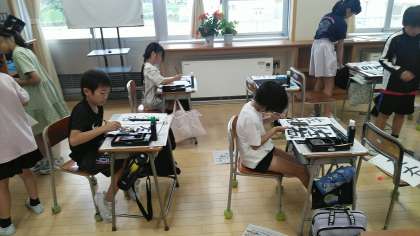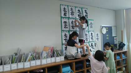 6月21日(金) 4年1組 左右 公開日 2024/06/21 更新日 2024/06/21 4年 4年1組の2時間目は、書写の学習でした。左右という文字の清書をして、できた人から順に掲示していました。