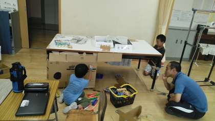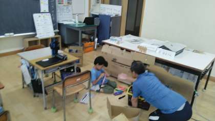 2時間目につばめ野級2組を覗くと、段ボールや新聞紙を使って何かをつくっていました。聞いてみると、「秘密きち。」と、いう返事が返ってきました。とても楽しそうでした。