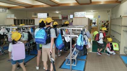 今朝の児童玄関の様子です。みんな元気に登校してきました。