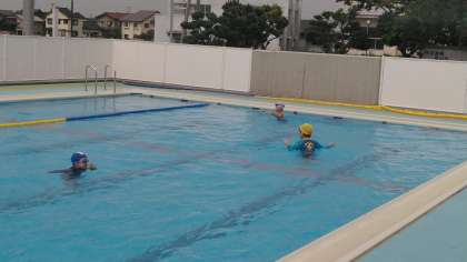 つばめ野級は、2時間目に合同でプールに入っていました。先生と一緒に追いかけっこをしていました。