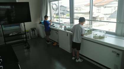 メダカの世話を朝からしている人もいました。