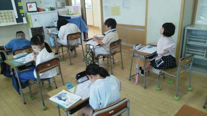 4年1組の2時間目は、算数科の学習でした。ドリルを使って角度の問題を解いていました。特に、三角定規の角度を利用して解く問題を考えていました。