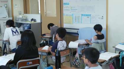 5年生の2時間目は、算数科の学習でした。割り算の学習中で、割る数が1より大きいときと、1より小さいときについて考えていました。