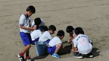 グラウンドの草むしりをしてくれている人たちもいました。