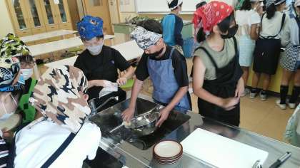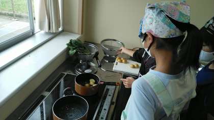 5年生の1・2時間目は、家庭科の学習でした。この前調べていた「ほうれん草」と「じゃがいも」を茹ゆで方を実際にやってみていました。なべや包丁等を洗ってから、ほうれん草やじゃがいもを洗ったり切ったりして、準備が整った班から茹でていました。