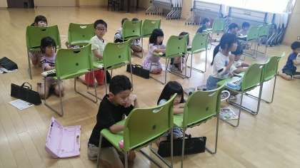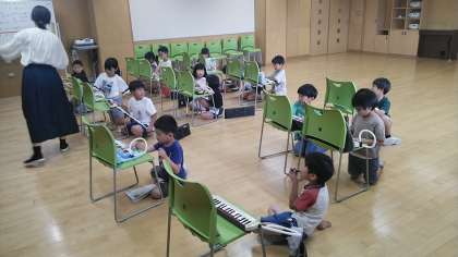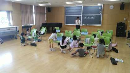 1年生の2時間目は、音楽科の学習でした。鍵盤ハーモニカの練習で、「どんぐりさんのおうち」という曲を練習していました。「二つのお山の左がわ」が「ド」の場所ということを覚えていました。