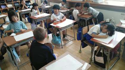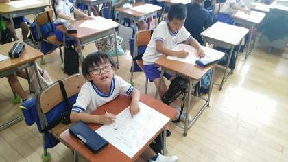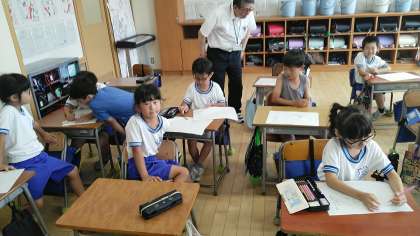 2年生の5時間目は、国語科の学習でした。「あったらいいなこんなもの」と思うものの絵を描いていました。イメージが思い浮かばないで苦労している人も何人かいるみたいでした。