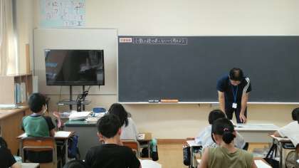 5年生の1時間目は、算数科の学習でした。小数は、倍の時にどうなるかについて考えていました。