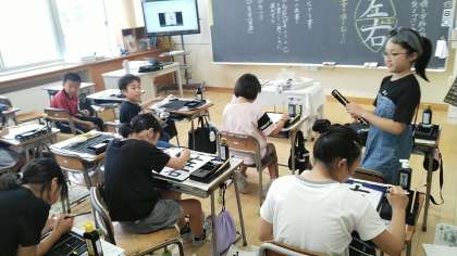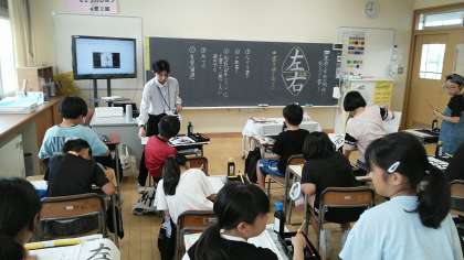 4年2組の1時間目は、書写の学習でした。「左右」という字の清書をしているところでした。