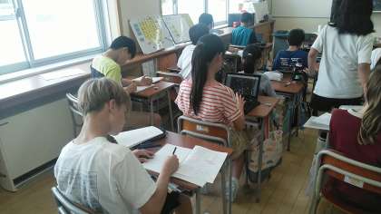 6年生の4時間目は、算数科の学習でした。学習のたしかめの直しをしていました。終わった人からクロームブックでタイピング練習をしていました。「ブラインドタッチできるかも…。」すごいです。