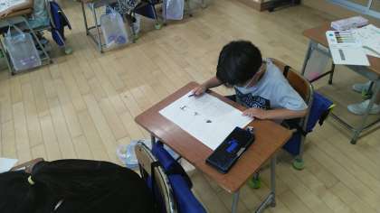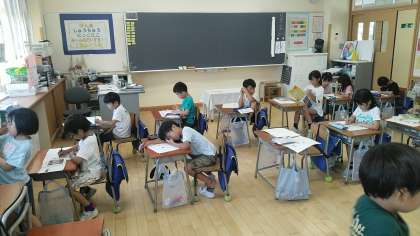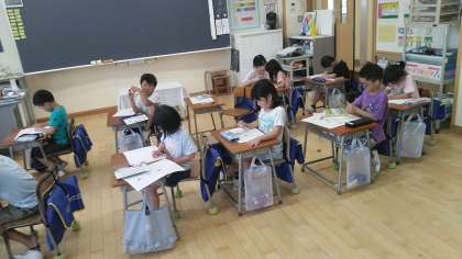 1年生の5時間目は、国語科の学習でした。学習のたしかめをしていました。最後までがんばって解いていました。