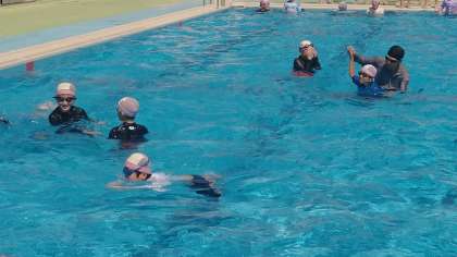 5・6年生の6時間目は、体育科の学習でした。プールで水泳指導の時間でした。グループを分けて練習していました。