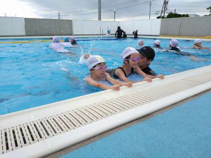 4年生は2年目の水泳教室です。 やる気満々の4年生たちは今年も上手になりたいと頑張っています。
