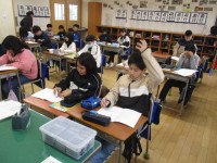 5年生の3時間目は、社会科の学習でした。米づくりについてまとめていました。特に、富山県は、米づくりで中部地方の仲間になることを資料から読み取っていました。