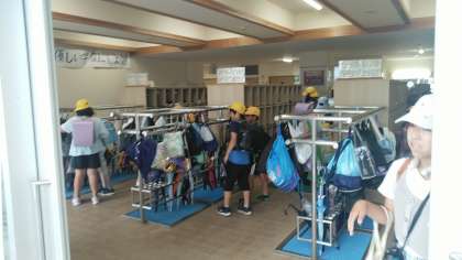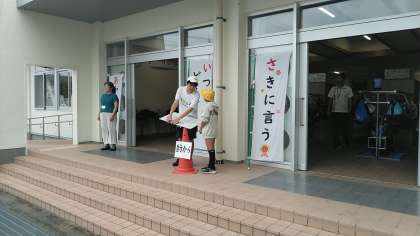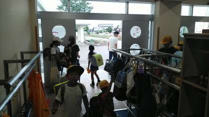今朝の児童玄関の様子です。今日も曇天です。アスファルトがぬれていました。