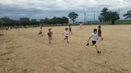 グラウンドも乾いてきたので、外で走ることになりました。