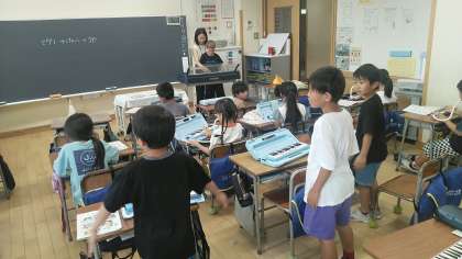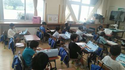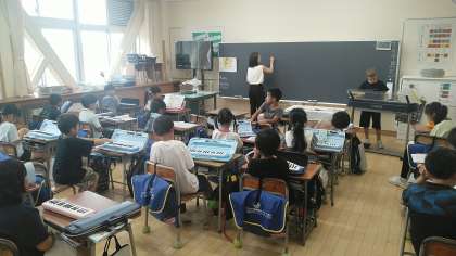 2年生の3時間目は、音楽科の学習でした。「かえるのうた」の合奏の練習をしていました。