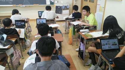 6年生は、5時間目に食物連鎖のピラミッドについて考えていました。