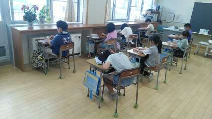 4年1組の1時間目は、社会科の学習でした。「ごみ処理の仕方」の部分のテストをしていました。