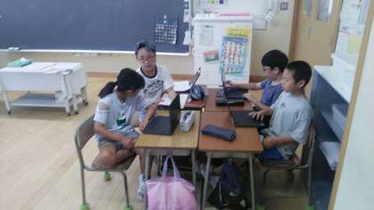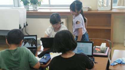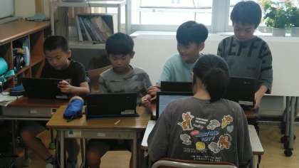 4年2組の1時間目は、国語科の学習でした。インタビューしたことをメモにとったり、クロームブックでまとめたりしていました。