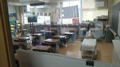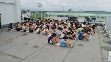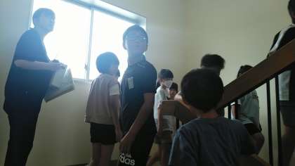 今日の避難訓練は、地震が起きて、津波警報が出るという想定で行いました。安全に屋上に避難することができました。