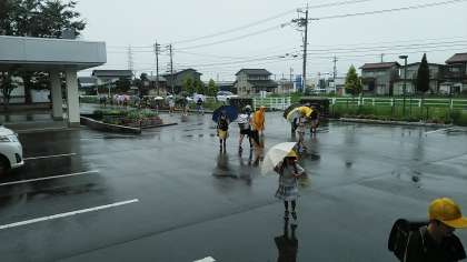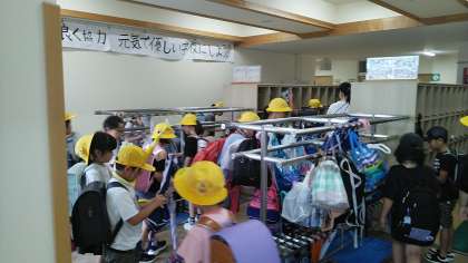 今朝の児童玄関の様子です。雨降りの朝です。