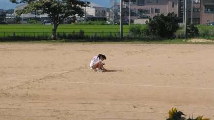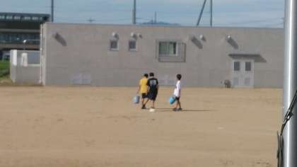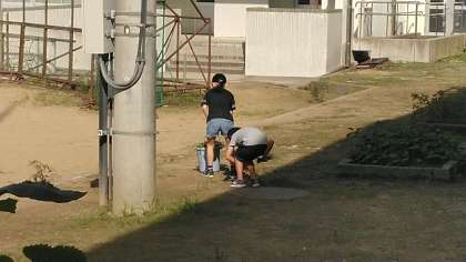 天気がよいので、グラウンドで草むしりをしている人たちもいました。